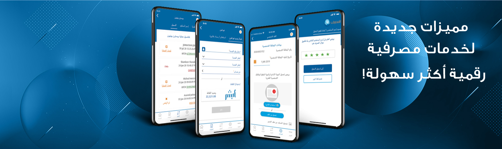 يمكن الآن لعملاء المصرف من تحديث بيانات بطاقتهم الشخصية القطرية أو جواز السفر الخاص المسجلة في أنظمة المصرف من خلال تحميل البطاقة أو جواز السفر المجدد الى تطبيق جوال المصرف، والاستمرار في الاستفادة من خدمات تطبيق الجوال وما يوفره من ميزات، مثل التحويلات المالية وعمليات دفع الفواتير أو فتح حساب جديد.