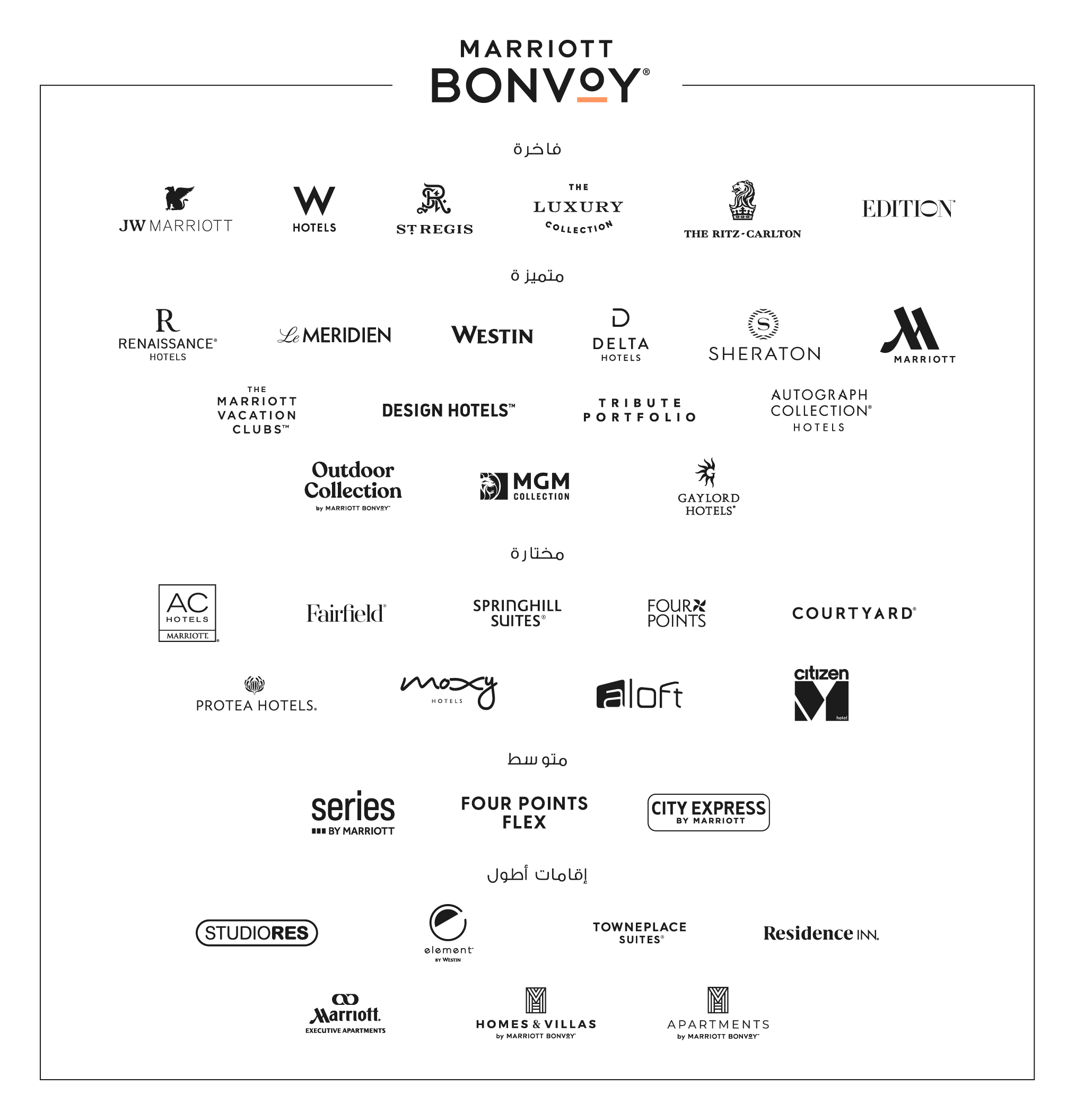 - اكسب نقطة Marriott Bonvoy واحدة مقابل كل 4 ريال تستخدمها في الفنادق المشاركة في Marriott Bonvoy