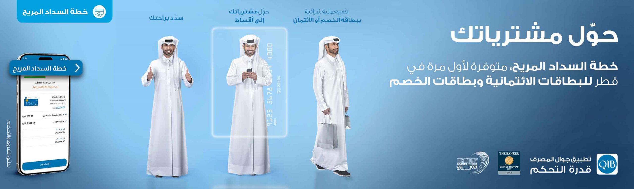 1.1 خطة السداد المريح على بطاقة الائتمان/الخصم متاحة لحاملي بطاقات الائتمان/الخصم الصادرة عن مصرف قطر الإسلامي شركة مساهمة قطرية يشار إليه فيما بعد باسم “المصرف أو البنك”