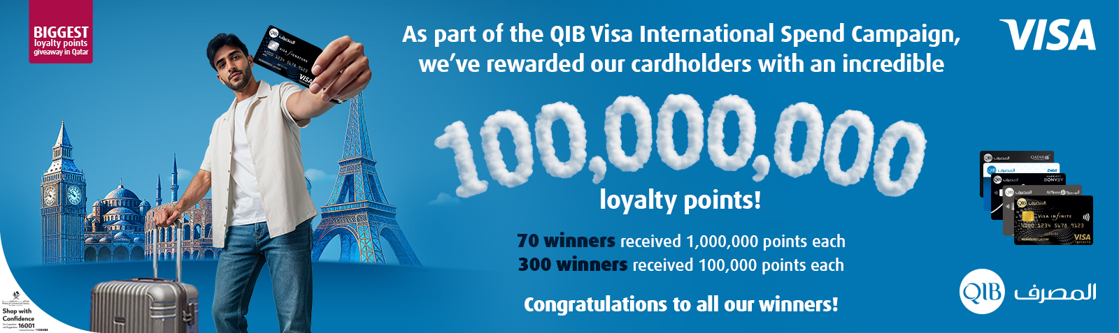 In total, the campaign awarded 100,000,000 loyalty points to a total of 370 winners, reinforcing QIB’s commitment to offering valuable rewards and exceptional payment experiences to its Visa cardholders.