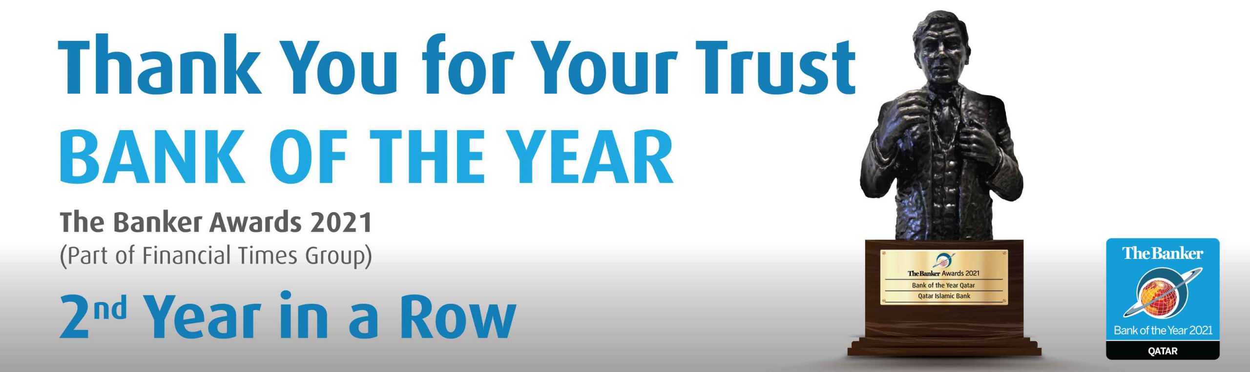 Qatar Islamic Bank (QIB) was recognized for the second consecutive year as “Bank of The Year in Qatar” by The Banker Magazine, a leading Financial Times’ title, as part of the Bank of the Year Awards 2021.